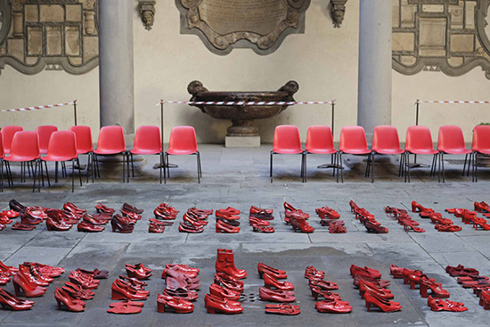 Firenze, installazione scarpe rosse in Palazzo Medici Riccardi contro a violenza sulle donne 2013-03-21 © Majlend Bramo/Massimo Sestini