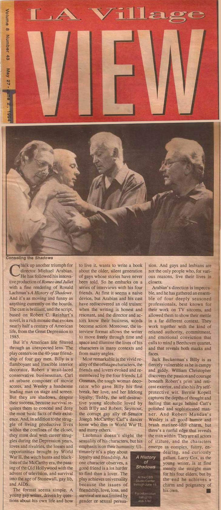 WAITING FOR GODOT was in the LA Times, TOP 10 for Los Angeles and New York for 2012.