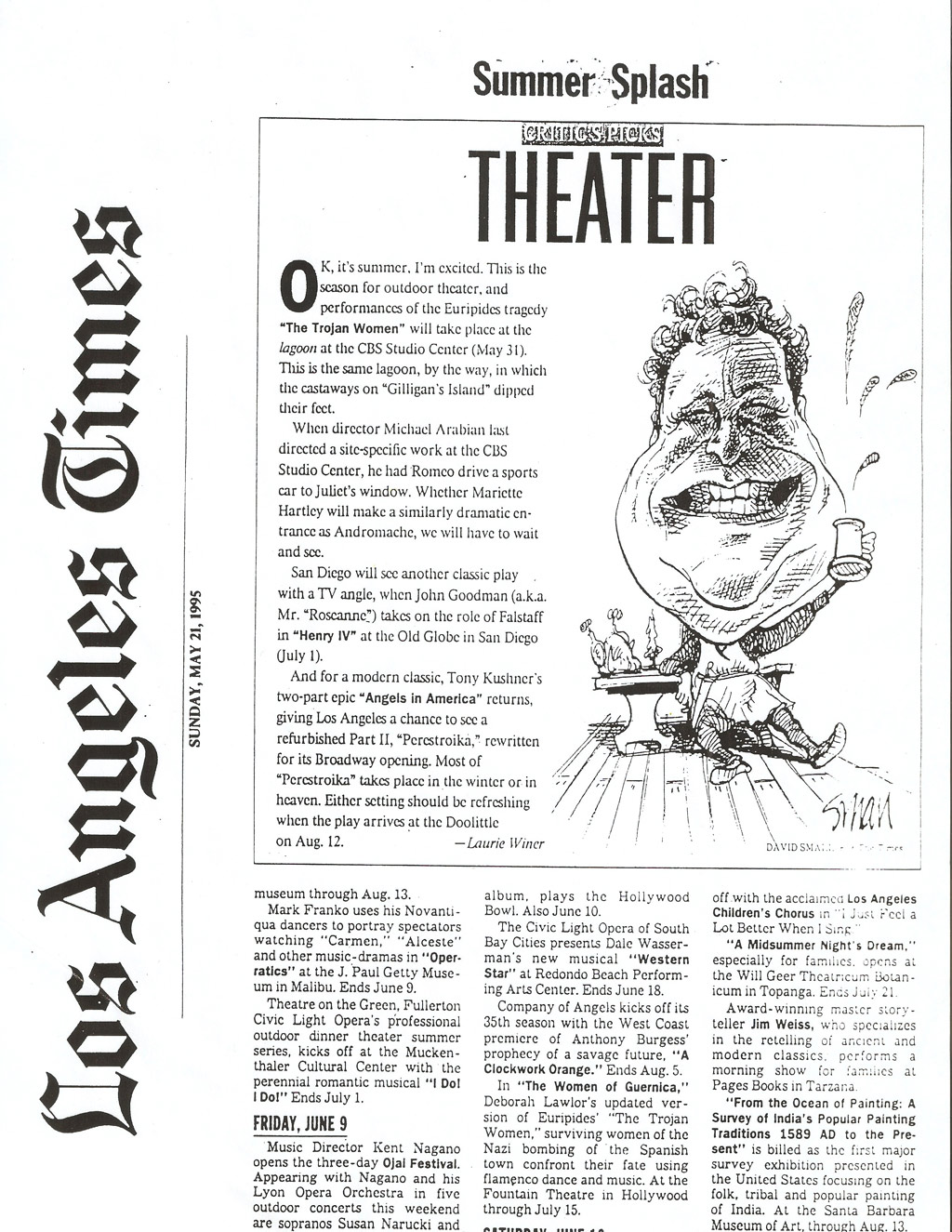 “…Seamlessly weaving elements of burlesque, commedia del-arte and absurdism, the actors under Arabian’s direction illuminate Beckett’s text in ways that are both profound, moving and entertaining.”